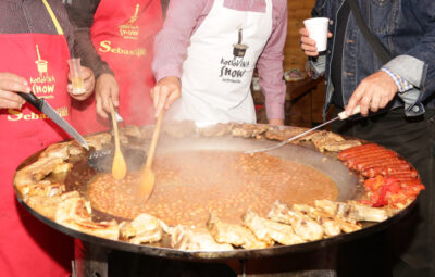 Pirjanje: Podlijte povrće vinom i s malo vode. Vratite meso i kobasice u sredinu tanjura.